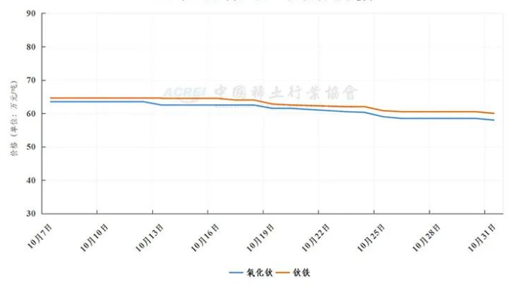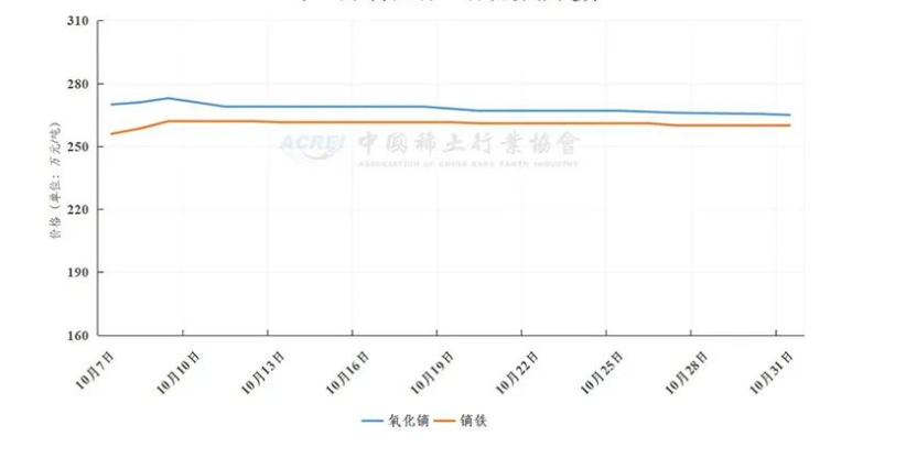Price trend of dysprosium oxide and dysprosium iron in October 2023