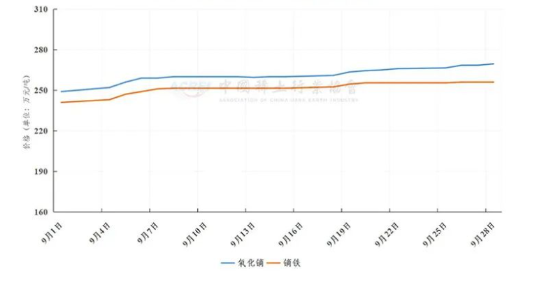 Price trend of dysprosium oxide and dysprosium iron in September 2023